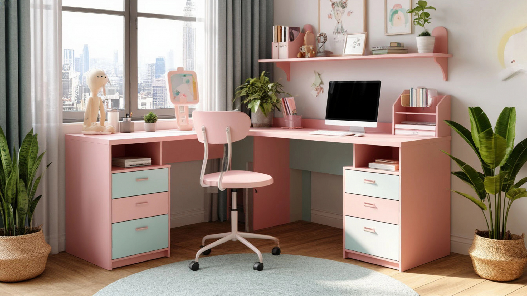 Угловой компьютерный стол "Галерея" — это не просто предмет мебели, а настоящая находка для каждого школьницы и студентки, стремящегося создать комфортное и функциональное пространство для учебы, творчества и отдыха. В современном мире, где значимость удобного рабочего места трудно переоценить, такой стол становится незаменимым элементом в интерьере. Его нежные пастельные тона придают комнате уют и гармонию, создавая атмосферу, способствующую концентрации и продуктивности.