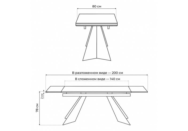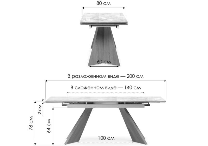 Расстояние между ножками: 60 см. Толщина столешницы: 2 см.