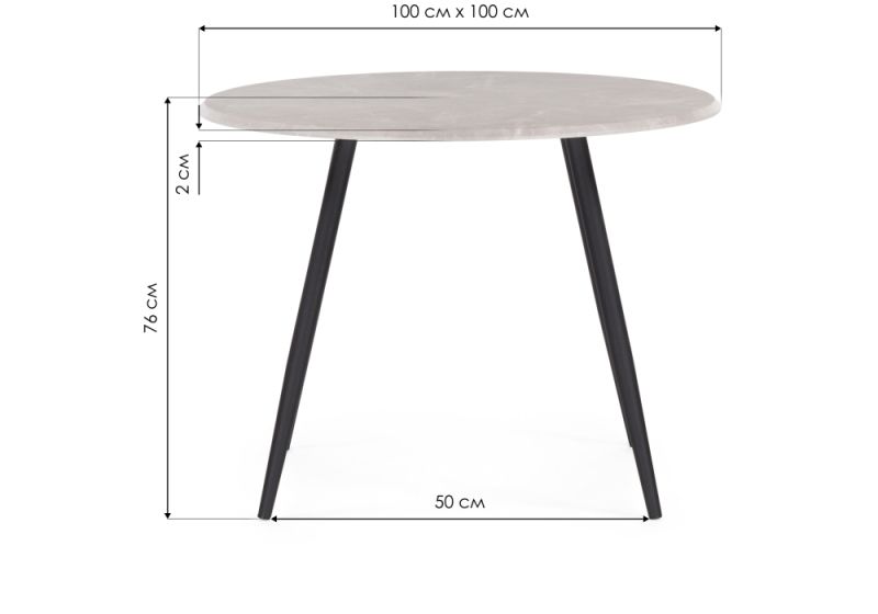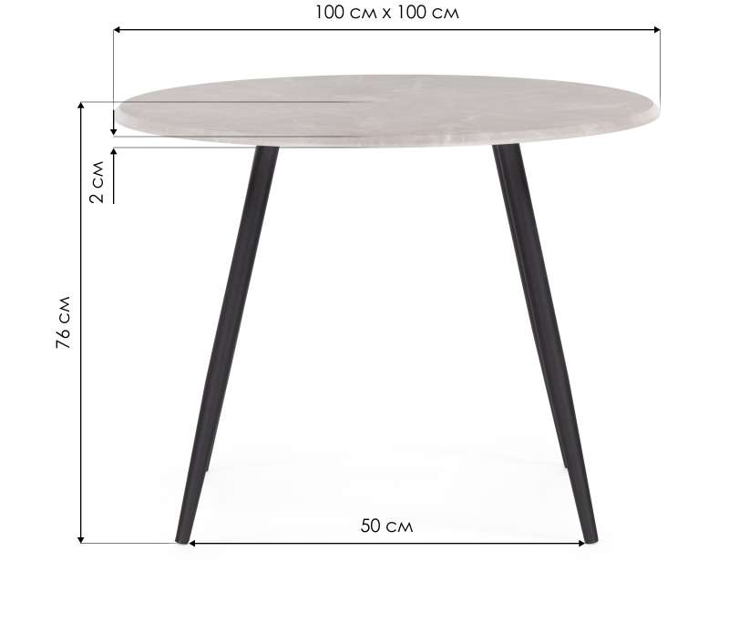 Расстояние между ножками: 50 х 50 см. Толщина столешницы: 2,2 см.