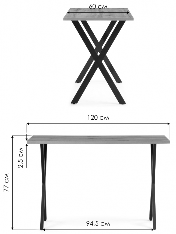 Стол деревянный Алеста Лофт 120х60х77 25 мм дуб делано темный / черный матовый (60x77)