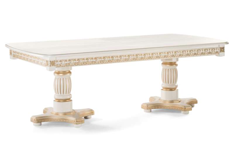 Стол деревянный Морнит 220(320)х110 слоновая кость / золото (110x76).