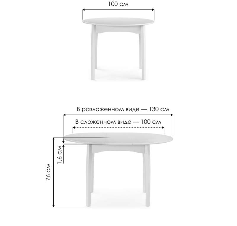 Длина стола в разложенном виде: 130 см.
